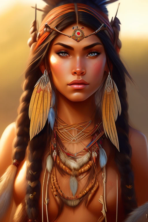 portrait photograph of Madison Beer as Pocahontas, young beautiful native american woman, perfect symmetrical face, indigenes feather jewelry, traditional handmade dress, armed female hunter warrior, (((wild west))) environment, Utah landscape, ultra realistic, concept art, elegant, ((intricate)), ((highly detailed)), depth of field, ((professionally color graded)), soft ambient lighting, dusk, 8k, art by artgerm and greg rutkowski and alphonse mucha